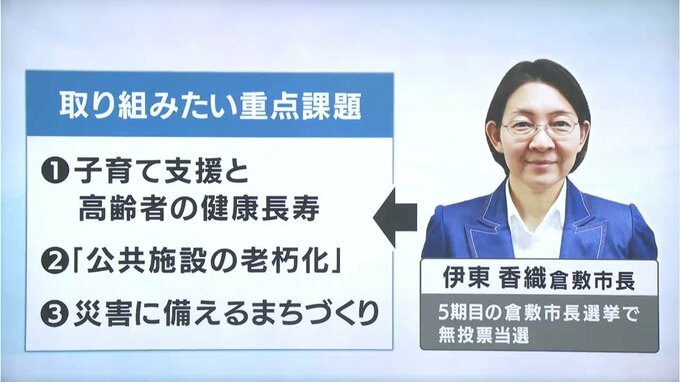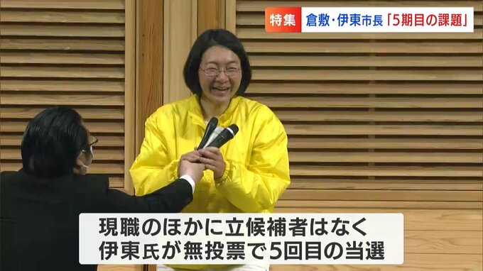 今月14日に告示された倉敷市長選挙。現職のほかに立候補者は無く、伊東氏が無投票で5回目の当選を果たしました。