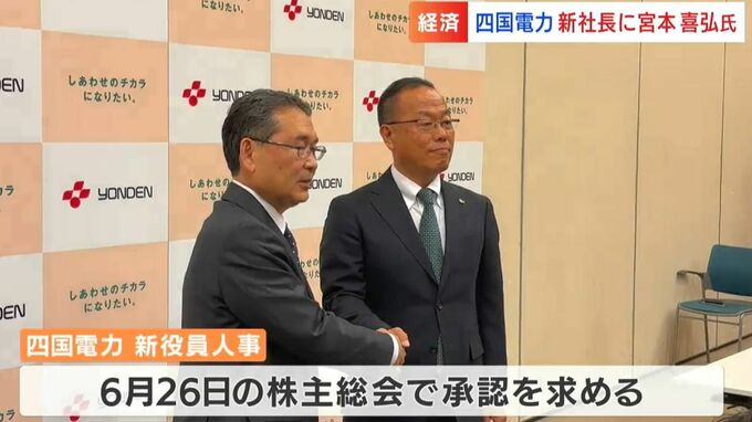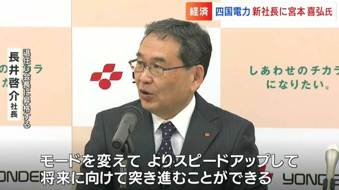四国電力が5年ぶりのトップ交代です。長井啓介社長が退任し、新しい社長に宮本喜弘常務をあてる役員人事を発表しました。長井社長は会長に昇格し、現在の佐伯勇人会長は退任します。