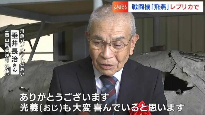 この機体を操縦していた垂井光義大尉は不時着の後に、米軍の機銃掃射に遭い戦死しました。きょう(26日)はその甥も訪れました。
