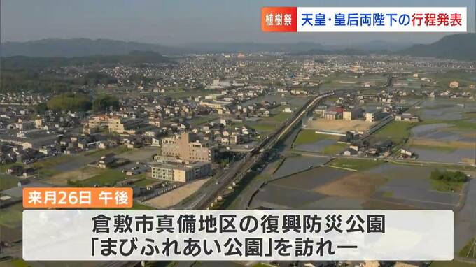 また、午後には西日本豪雨で甚大な被害を受けた倉敷市真備地区の復興防災公園「まびふれあい公園」で、伊東香織倉敷市長から復興状況の説明を受けるほか、被災者と交流されるということです。