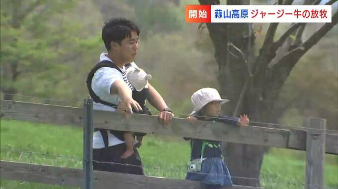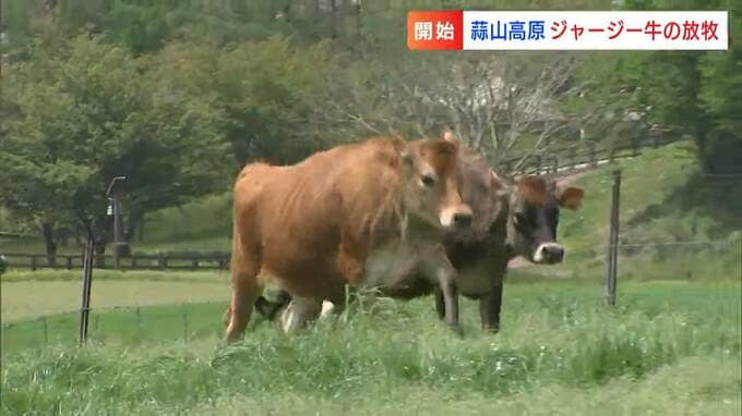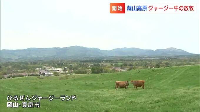 岡山県北の春の風物詩です。あす(27日)から始まるゴールデンウィークを前に、ひるぜんジャージーランドで牛の放牧が始まりました。