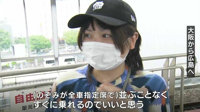 午前9時過ぎ、岡山駅に東京発の「のぞみ号」が到着しました。昨年末から「のぞみ号」は年末年始・ゴールデンウィーク・お盆などの混雑が予想される期間、「全席指定席での運行」としていて、午前中は車内の混雑は見られませんでした。
