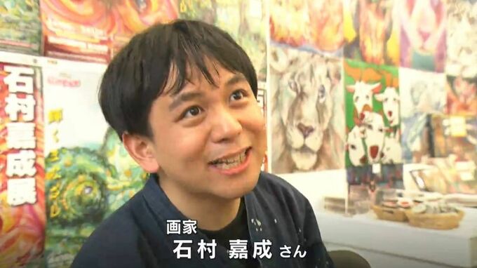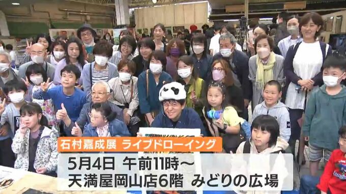 色彩豊かな動物画で注目を集める自閉症の画家・石村嘉成さんの個展が、天満屋岡山店で開かれています。きょう(27日)はライブドローイングも行われ、多くの来場者で賑わっています。