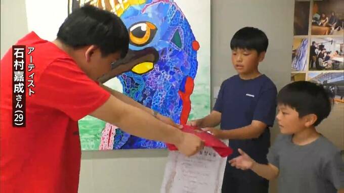 5000人目の来場者となったのは広島からの家族連れです。アーティストの石村嘉成さんから、伊藤遼太さん・翔太さん兄弟に記念品が贈られました。
