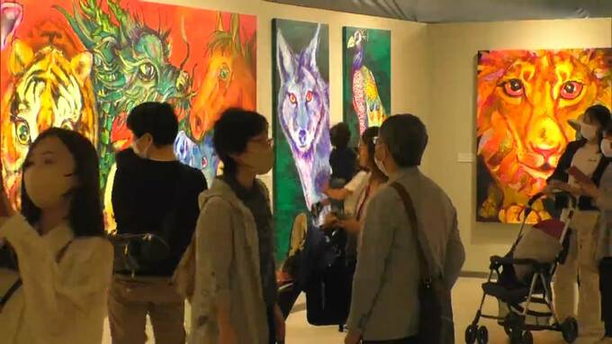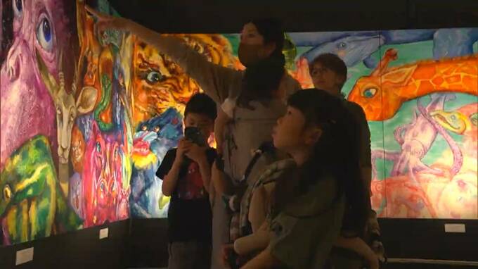 石村さんは2歳で自閉症と診断されましたが、家族の懸命な療育を経てアーティストとしての才能が花開きました。ゴールデンウィークも会場には県内外から多くの人が訪れ、力強い作品に魅了されています。