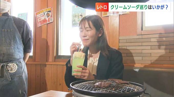 「焼き肉を食べながら飲むと、食べた終わった後にアイスを食べるような感覚でクリームソーダを飲むというので意見が二分するんですけど、お客さんの好みで。みなさん写真撮ってもらったりしているので、矢掛とお店を一緒に認知してもらえたらと」