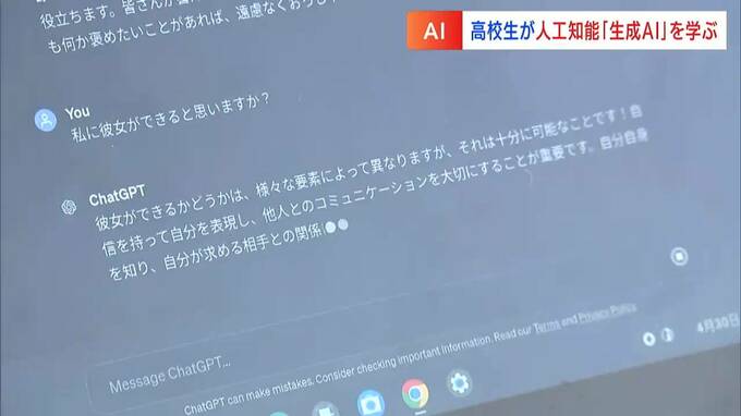 岡山市東区の県立瀬戸高校です。生徒がパソコンを通じて会話をしている相手は自動で文章などを作る人工知能・生成AIです。そのうちの一つ「チャットGPT」に「私に彼女ができると思いますか?」と問うと…