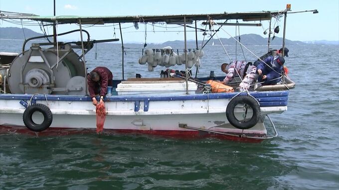 瀬戸内海で漁獲量が減少しているイイダコを増やそうと、香川県と漁業者が連携して、卵を抱えた親のタコを放流しました。