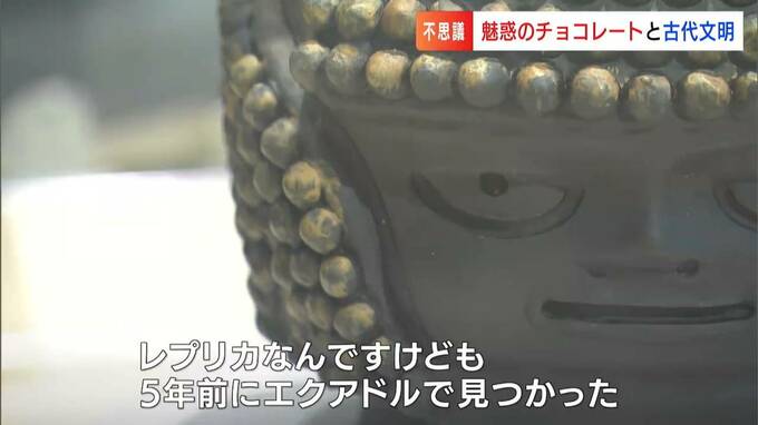 「レプリカなんですけれども、5年前にエクアドルで見つかった『世界最古のチョコレート容器』です」