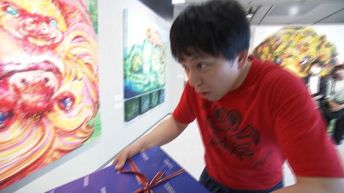色鮮やかな動物画で人気の自閉症のアーティスト石村嘉成さん。岡山市北区で開かれている展覧会の来場者が1万人を超えセレモニーが行われました。