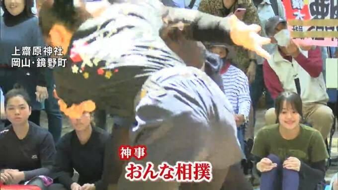 白熱のぶつかり合い「おんな相撲」横綱は全日本ジュニアアームレスリング選手権2連覇のスーパー女子高校生【岡山・鏡野町】 2024年5月3日(金) 18:00 岡山 岡山県北・鏡野町で恒例の「おんな相撲」が開催されました。波乱の展開となった今回の大会。横綱に輝いたのは…一体?女性同士が激しくぶつかりあうたびに観客は拍手喝采。上齋原神社の神事その名も「おんな相撲」…