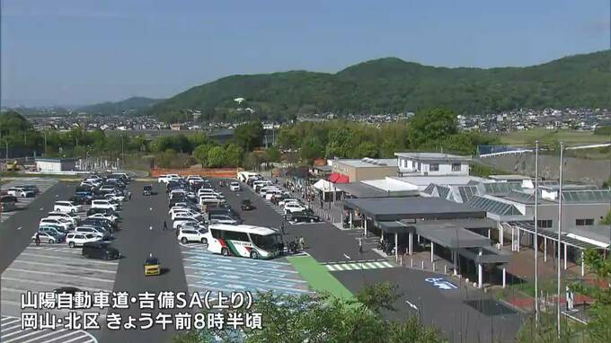 山陽自動車道・吉備サービスエリアの上りでは、ふるさとからUターンする家族連れや連休の残りを楽しむ人たちが立ち寄り、乗用車の駐車率は、およそ90%ということです。