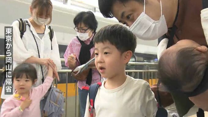 午前9時すぎのJR岡山駅の新幹線のホームでは、大型連休を故郷で過ごした帰省客らが列車を待っていました。JRでは昨年末から混雑が予想される時期ののぞみ号を全席指定にした影響もあり、予約席数が昨年の115%に増えたということです。