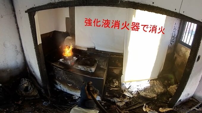 見えていたのは、VR=バーチャルリアリティの空間で再現された天ぷら火災の現場です。映像では出火から消火までの一連の流れを疑似体験できるようになっています。