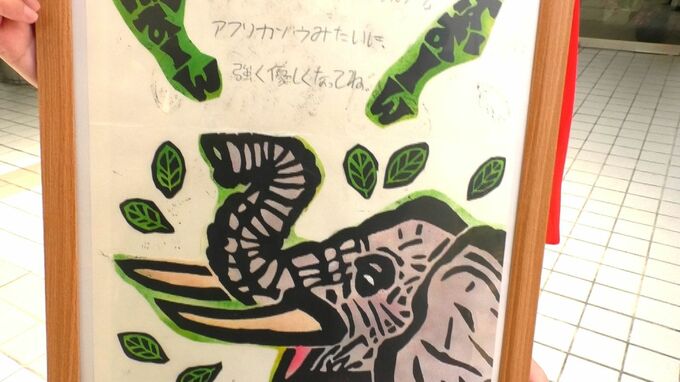 『小学校ご入学おめでとうございます。1年生になってもお勉強を頑張ってくださいね。アフリカゾウみたいに強くやさしくなってね』