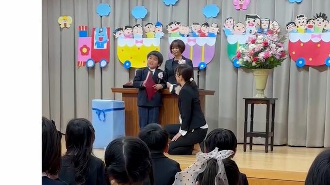 卒園式で、「奥野弘光です。これから小学校1年生になったら勉強したいです」とみんなの前で挨拶できました。