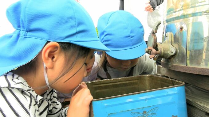 咲き誇るレンゲの中元気いっぱいに遊ぶのは津山市の大崎保育園の園児たちです。去年10月に園児たちが種をまき見ごろを迎えた花畑で開かれた「れんげパーティー」です。自然との触れあいを楽しんでもらおうと地元の養蜂家が開きました。レンゲからハチが集めた蜜を遠心分離器で搾ると子どもたちから歓声が上がりました。