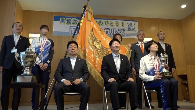 岡山県庁を訪れたのは岡山シーガルズの河本昭義監督、主将の川島亜依美選手、そして宮下遥選手です。シーガルズは今月6日、大阪市で開催された「黒鷲旗バレー」でクラブ史上初の栄冠を手にしました。