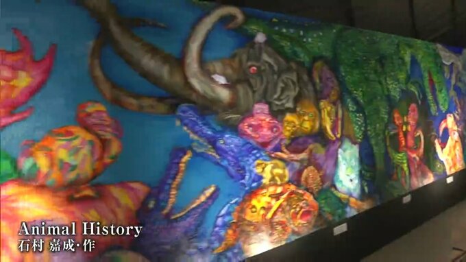 岡山市北区の天満屋岡山店で開催中の自閉症の画家石村嘉成さんの個展も明日(12日)が最終日です。話題を集めた作品の中から一部を、石村さんの解説でご覧ください。