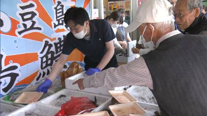 けさ(11日)とれた新鮮な魚の朝市など、小豆島の魅力を感じられるイベントが岡山市南区のスーパーで開かれています。