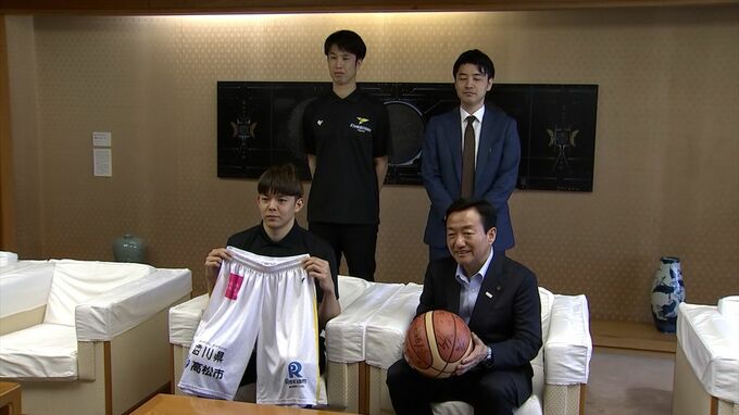 レギュラーシーズンを2位で終えたバスケットボールB3リーグの香川ファイブアローズが、高松市の大西市長に結果を報告しました。