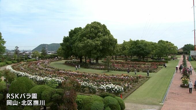今年で開園50周年を迎えた岡山市北区撫川のRSKバラ園は、「春のバラ」のシーズンを迎え、色とりどりのバラが見頃を迎えています。
