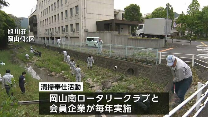 岡山市北区の医療福祉施設「旭川荘」で、岡山南ロータリークラブと会員企業によるボランティアの清掃活動が行われました。