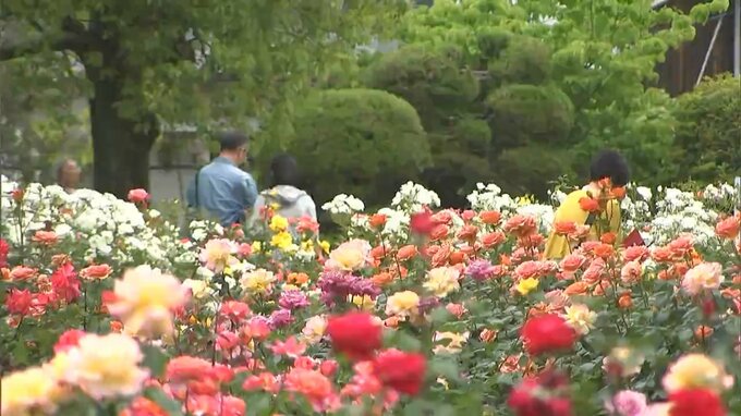 さまざまな種類のバラが一斉に咲いている様子が楽しめるRSKバラ園の「春のバラまつり」は6月16日まで開かれています。