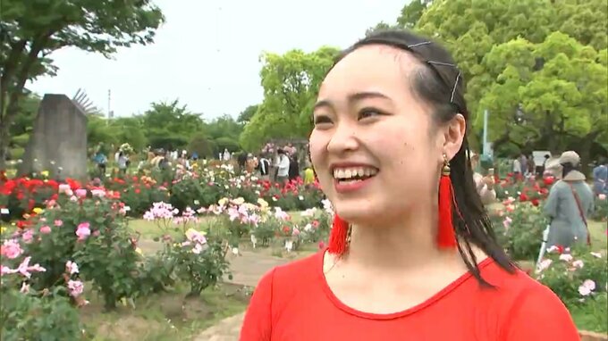 可憐なピンク色に、鮮やかなオレンジ色、様々な色のバラが咲き誇る中、環太平洋大学ダンス部によるRSKバラ園開園50周年を記念したパフォーマンスが行われました。