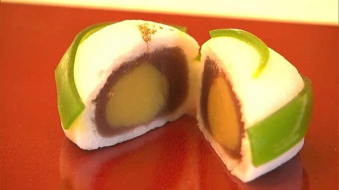 「米寿のお祝いの色として黄色い餡を中に入れてございます。それからお道具でありますとか、お土産にもお祝いの黄色い色を入れておりますので、そういうところをトータルで楽しんでいただければと思っております」