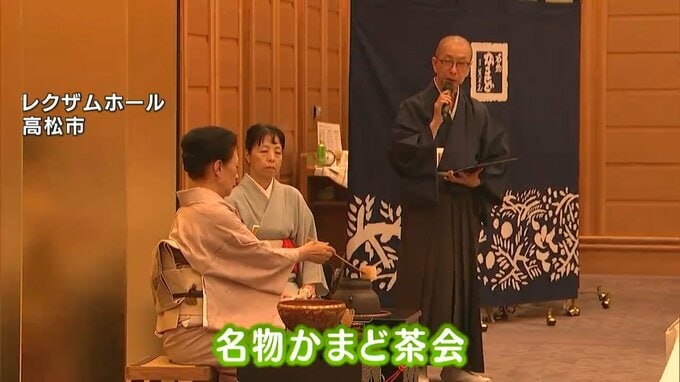茶会は坂出市の和菓子メーカー「名物かまど」が開いたもので、今回で73回目となります。高松市のレクザムホールに設けられた特設の茶席に県内外から約2000人が訪れました。