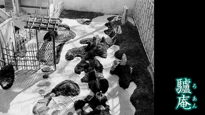 70年前の写真です。砂や苔で自然を表現した枯山水と、茶庭が融合するモダンな作りの日本庭園、その名は「驢庵」です。しかしこの庭園は、10年以上手入れされず荒れたままの状態で放置されていました。