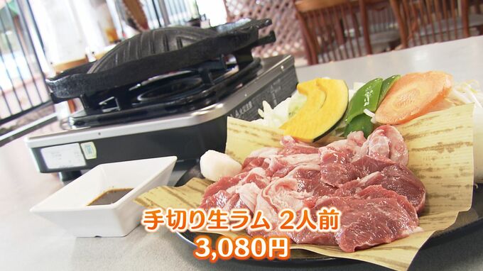 「はい失礼します。こちらが手切り生ラムジンギスカンです。(使用しているのは)子羊になります。余分な脂分を削ぎ落して、非常に食べやすくなっています」