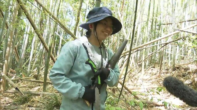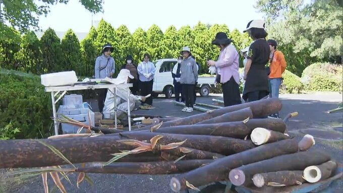 倉敷市の清心中学校・清心女子高校では竹を有効活用する方法を知ってほしいと、3年前から裏山の竹を使ったワークショップを開いていて、きょう(25日)はタケノコの収穫が行われました。参加者は普段はなかなかできない自然体験を楽しんでいました。