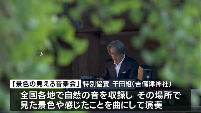 吉備津神社境内の自然の音に、守時タツミさんのピアノの音が共鳴します。
