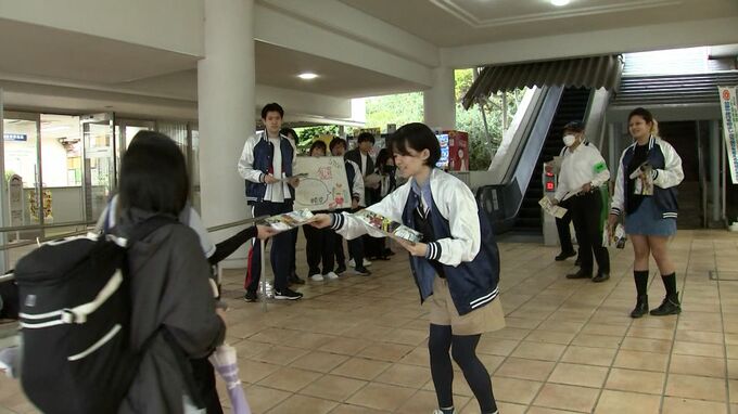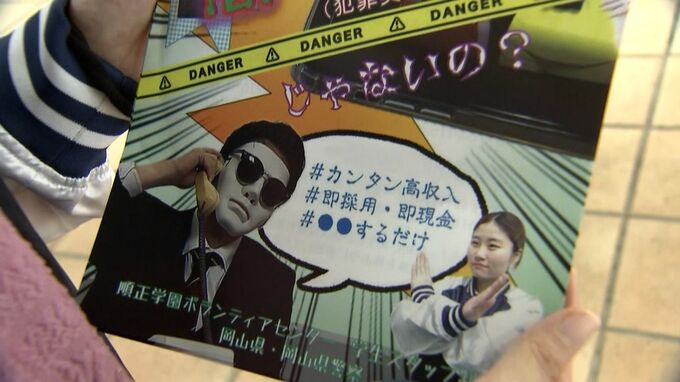 若い世代が闇バイトなど犯罪への加担を防ごうと岡山県高梁市の大学で学生と警察による啓発活動が行われました。