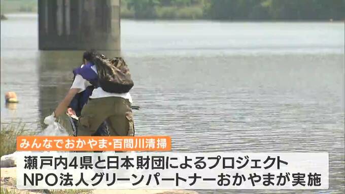 百間川の清掃には、県内の中学・高校11校から34人が参加しました。この活動は、瀬戸内海沿岸の4つの県と日本財団によるプロジェクト「瀬戸内オーシャンズX」の一環で、グリーンパートナーおかやまが主催しました。