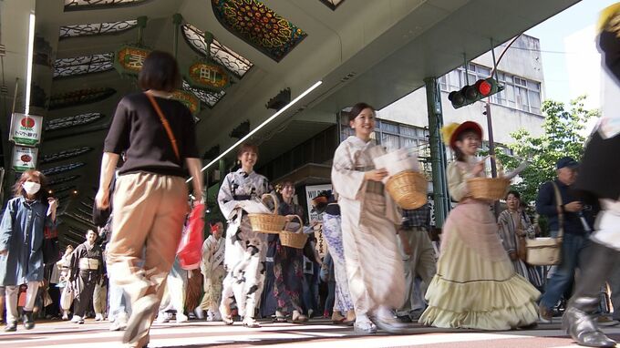 岡山市の表町で産科医の修業をし日本とオランダの架け橋と呼ばれたシーボルトの娘「楠本イネ」をたたえるパレードが表町商店街で開催されました。