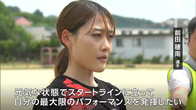 岡山市内の競技場に姿を現わした前田穂南選手です。日本記録を更新した、1月の大阪国際女子マラソンの後にひざの痛みが出た影響で、本格的な練習を始めたのは4月末。それでも、5月の仙台国際ハーフマラソンでは優勝、いまは、起伏の激しいパリのコースに対応するためクロスカントリーのコースで走り込むなど、練習は順調にこなせているといいます。