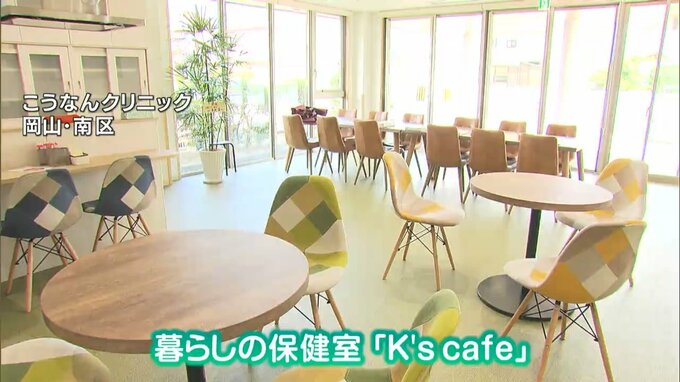 きょう(2日)、岡山市南区のこうなんクリニックに開設された「暮らしの保健室K’scafe」です。高齢化が進む中、医療や介護に不安を持つ人が安心できる場所、楽しめる場所をつくりたいと開設。