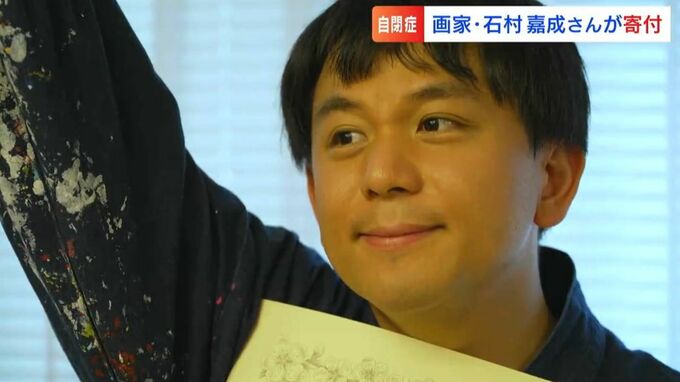 自閉症の画家・石村嘉成さんらが岡山県庁を訪れ、障害がある人を支援する基金に寄附金を贈りました。