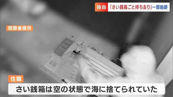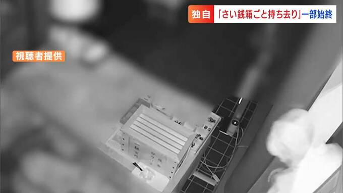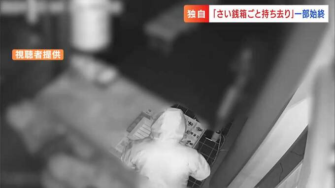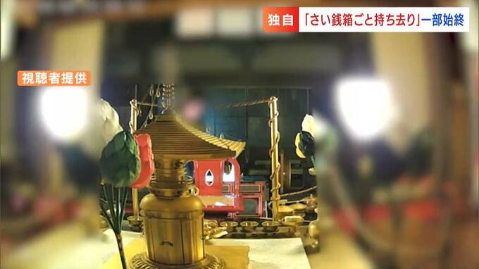 防犯カメラの映像には、賽銭箱をライトで照らし針金状のものを中に入れ、その後、賽銭箱ごと持ち去ったとみられる様子が映し出されていました。