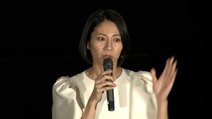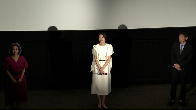 イオンシネマ岡山に女優・松下奈緒さんと池上季実子さん、美作市出身の大谷健太郎監督が登場。会場の約200人から大きな拍手が贈られました。