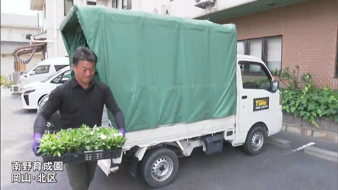 「花を育てて豊かな感性を育んでほしい」と、ホームセンターを運営するタイムと岡山キワニスクラブが岡山市北区の南野育成園に花の苗をプレゼントしました。