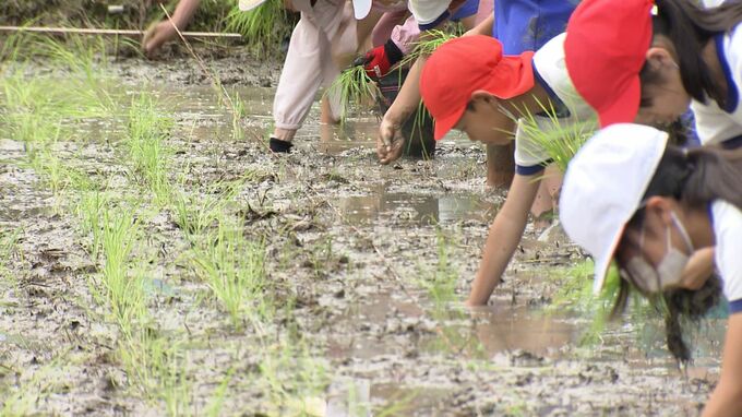 きょう(10日)は、新本小学校の5年生13人に、田植えを通して赤米にまつわる文化を伝えました。