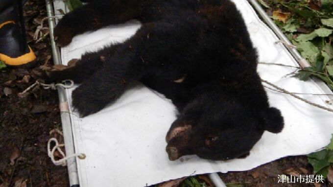 けさ(12日)、岡山県津山市上高倉の山林で、イノシシ・シカ用の罠にツキノワグマ1頭が捕獲されているのが見つかりました。