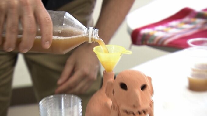 数千年前…中南米で作られていたという「笛吹きボトル」。一体何のために古代アンデス人はこの不思議なボトルを作ったのか。きょう(12日)、岡山市でその謎に迫る初の実験が行われました。