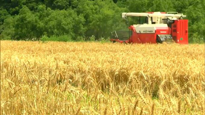 岡山県津山市で特産品の小麦「せときらら」の収穫が最盛期を迎えています。