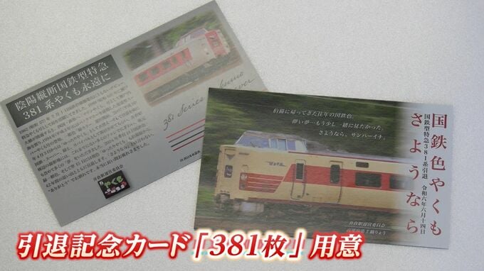 井倉駅運営委員会では、集まったファンのためにと381系にちなんだ記念グッズを販売。さらには、引退記念カード限定「381枚」を用意しました。