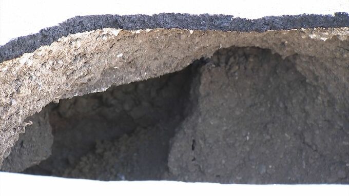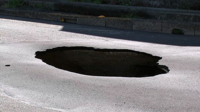 (茅原淳記者)「先月29日に陥没した道路に再び大きな穴があきました」